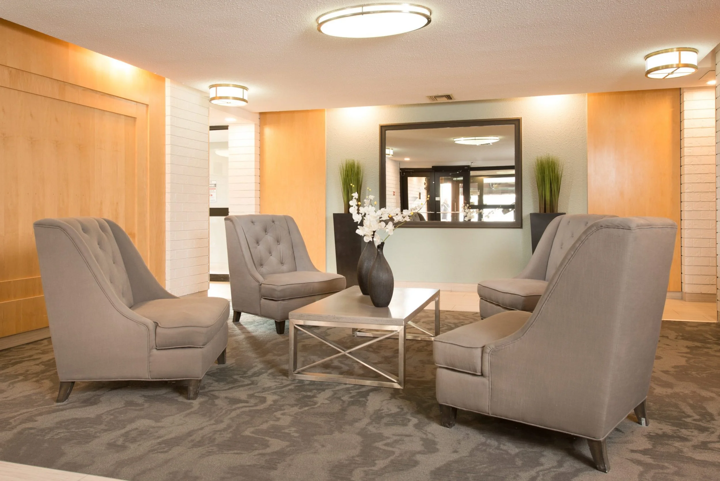 The Design Challenge was that the apartment buildings were built decades ago. The challenge was to provide a design concept that not only complementary with all the existing architectural elements in the buildings, but also highlight the existing design features in the lobby areas, refresh the finishes in the space, create a warm and welcoming lobby for the residents, as well as incorporate new elements that will create a long lasting appearance. A limited budget also had an impact on what could be done to the space.